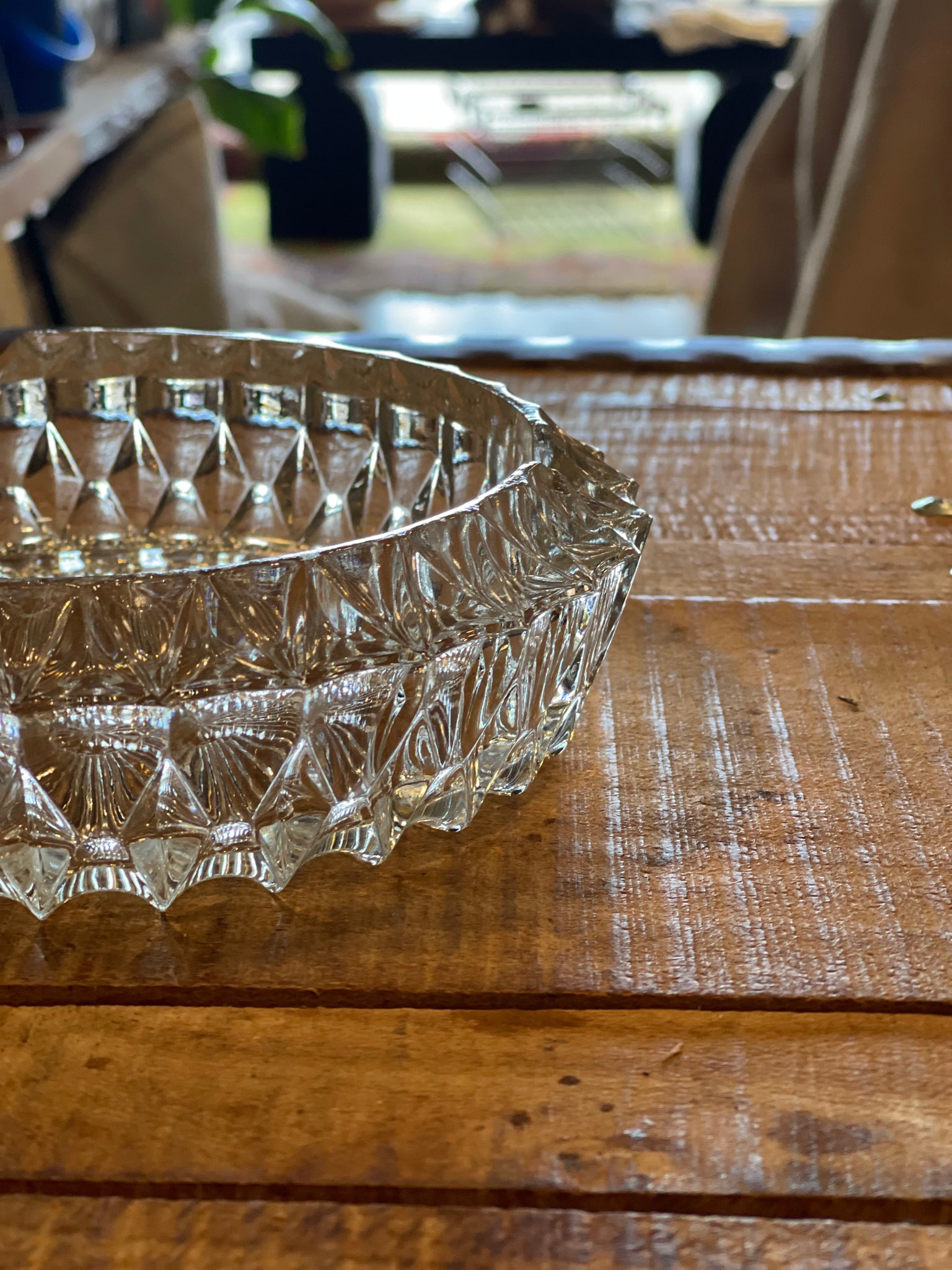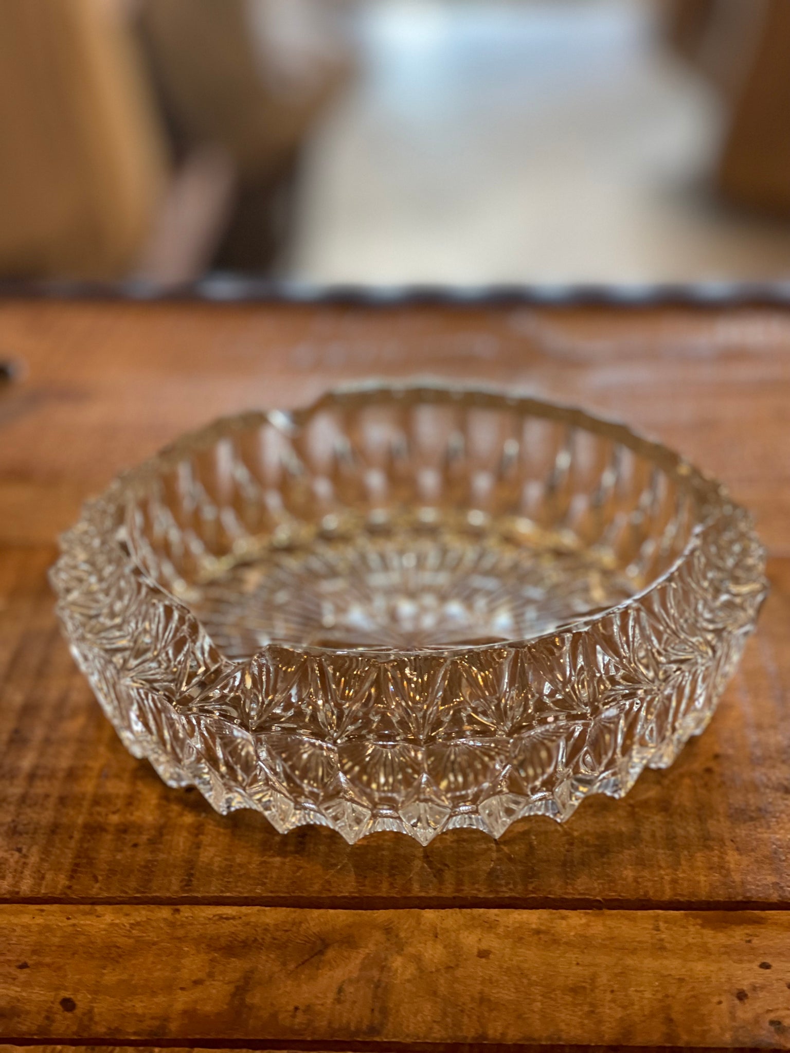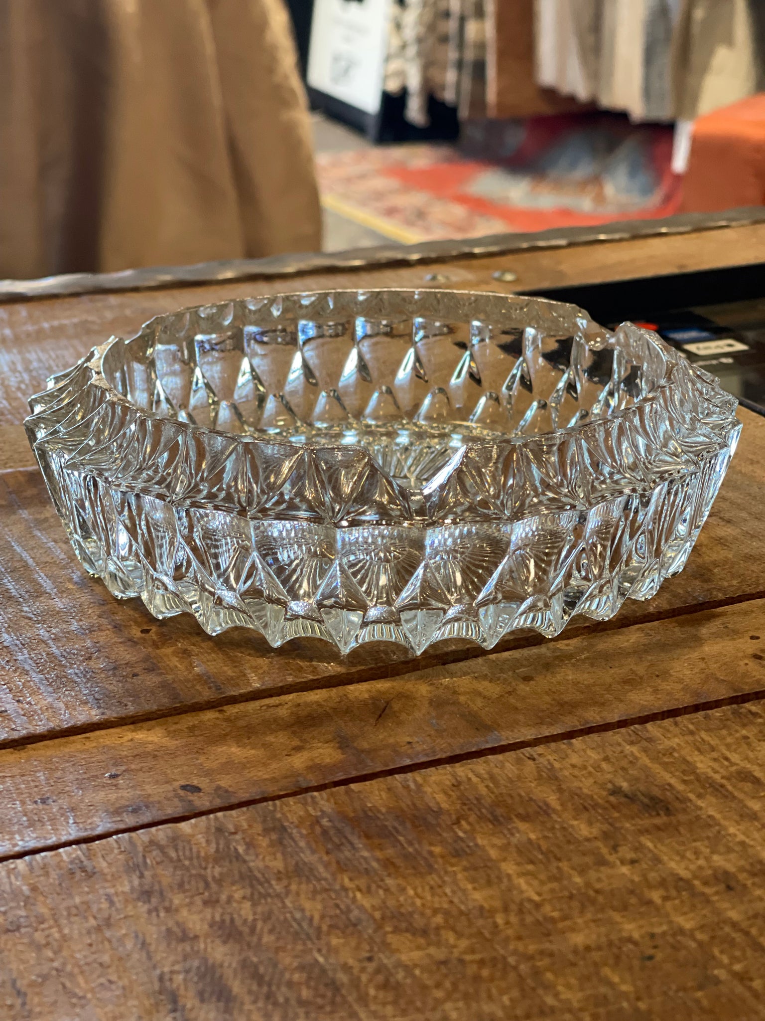 Elevate your tabletop or bar with this stunning vintage ashtray from the 1960s. Crafted from heavy, clear cut glass, its geometric design captures the bold elegance of Mid-Century Modern style. The intricate cuts catch the light beautifully, making it as much a decorative piece as a functional one.