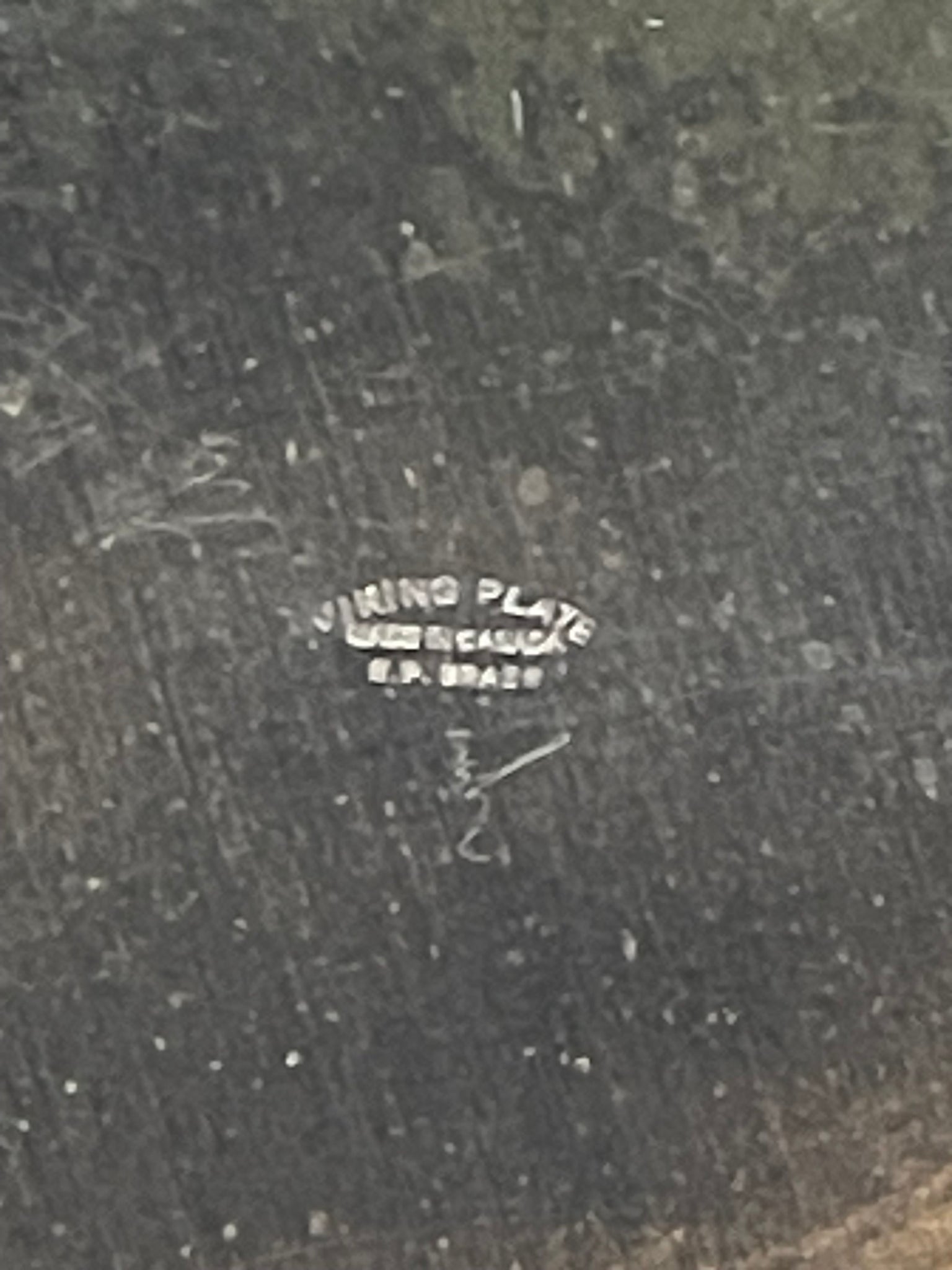 Add a touch of vintage elegance to your table or décor with this Viking Plate silver-plated serving tray, crafted in Canada by Lipman-Levinter Industries of Toronto during the 1920s–1930s. Made from electroplated silver on a copper base (E.P. on Copper), this tray showcases the classic craftsmanship and design charm of early 20th-century Canadian silverware.